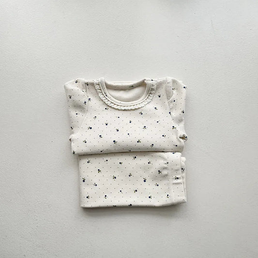 مجموعة ملابس أطفال جديدة لربيع 2023 بأكمام طويلة، مكونة من بلوزات وبنطلونات مزهرة للأطفال، مكونة من قطعتين، ملابس منزلية قطنية للأطفال، ملابس للأولاد والبنات