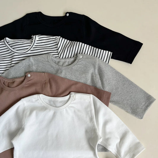 قمصان أطفال خريف 2023 الجديدة بأكمام طويلة من القطن للأولاد والبنات الصغار، قمصان أطفال، ملابس أطفال