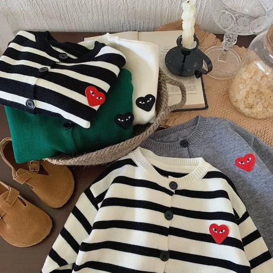 سترة أطفال جديدة لعام 2023 من عمر 0 إلى 7 سنوات، سترة كارديجان مخططة بأكمام طويلة، ملابس خارجية للخريف