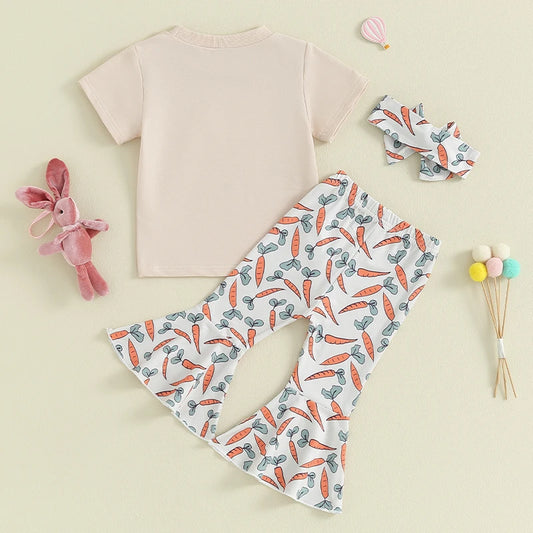 طقم ملابس عيد الفصح للبنات الصغيرات مكون من تي شيرت بأكمام قصيرة وبنطلون وبنطلون على شكل جزرة للأطفال الصغار، طقم من قطعتين ملابس صيفية