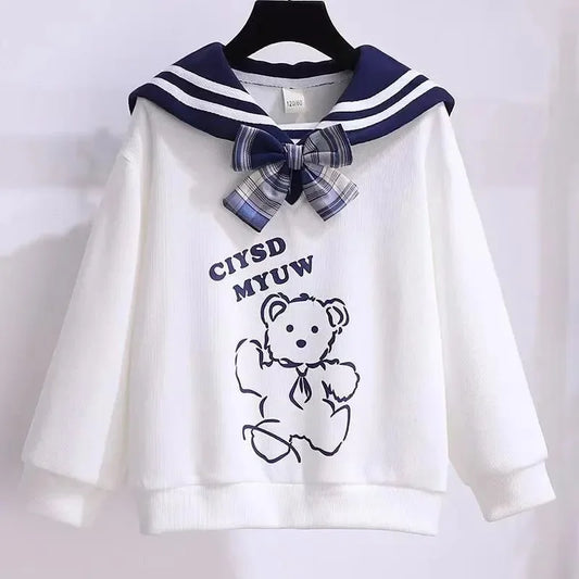 زي مدرسي خريفي للفتيات الصغيرات، سترة برسوم كرتونية لطيفة، تنورة مطوية، ملابس مدرسية ربيعية من 3 إلى 15 سنة