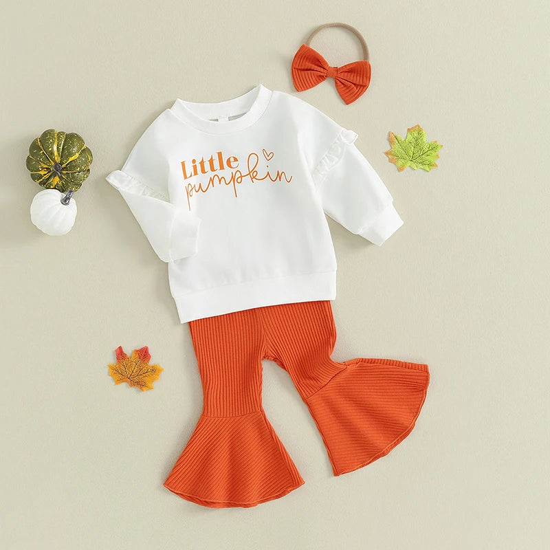 2023-08-01 مجموعة ملابس الهالوين للفتيات الصغيرات من Lioraitiin 0-3T، بلوزات وبنطلونات واسعة من الأسفل بنقشة اليقطين، ملابس للفتيات الصغيرات