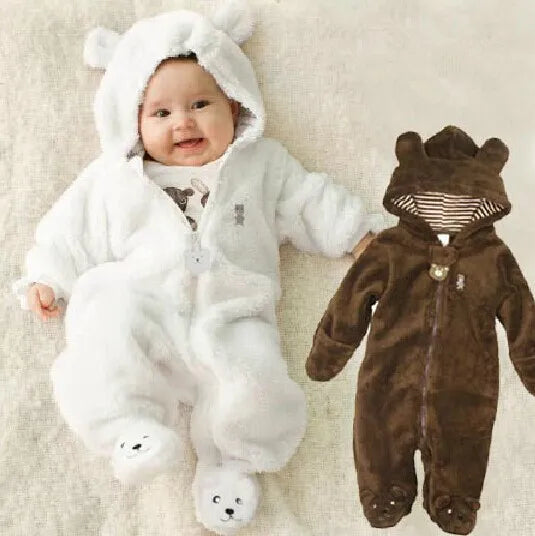 رومبير للأطفال حديثي الولادة من ماركة كورال صوف بتصميم دب لفصل الخريف والشتاء، مع هودي، وجمبسوت للأطفال البنات والأولاد، وملابس للأطفال حديثي الولادة