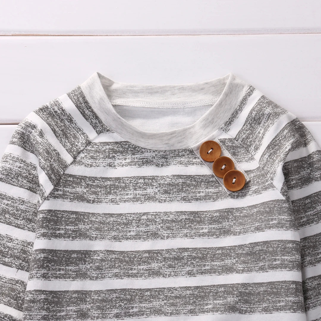 طقم ملابس أطفال من سيتجيت، مكون من ٣ قطع، مناسب للخريف، مكون من بلوزة مخططة، تيشيرت، بنطال، ليجنز، قطعتين.