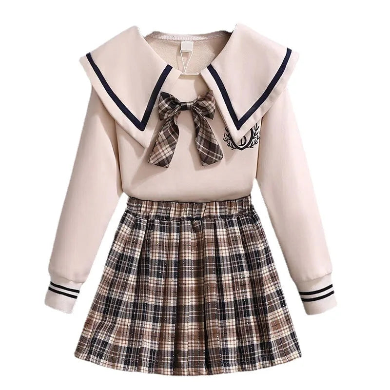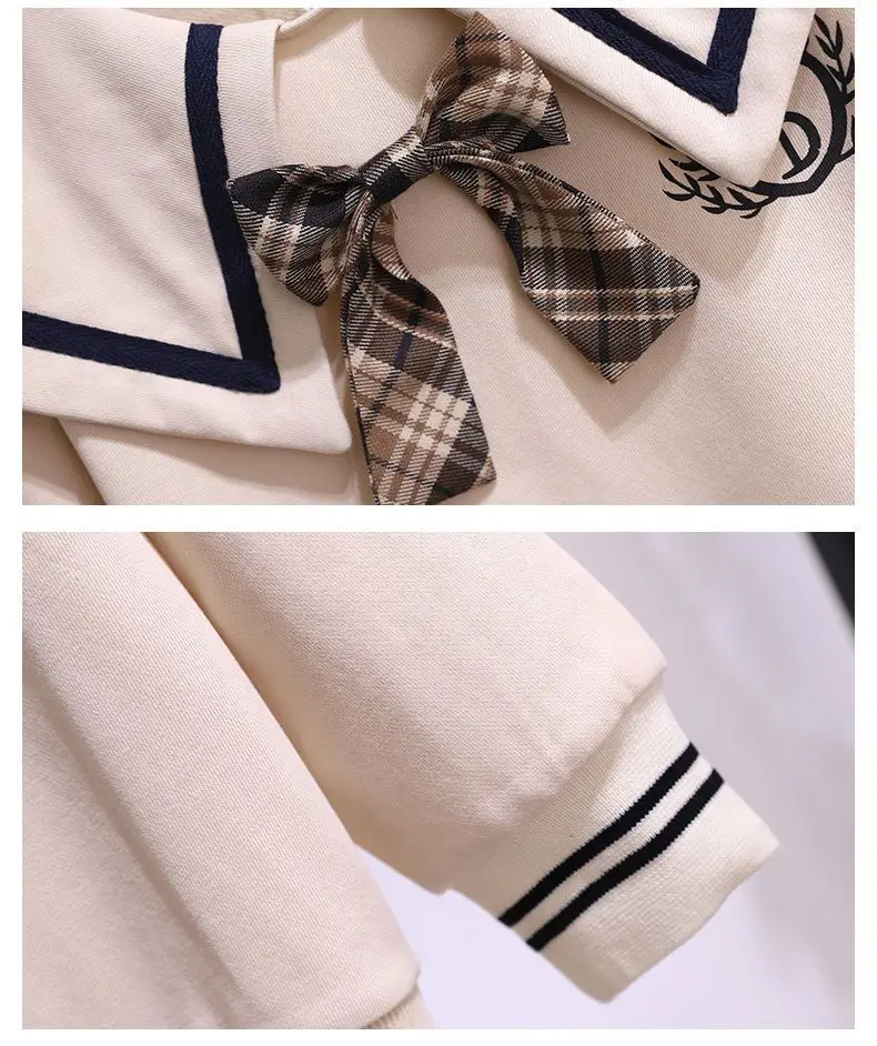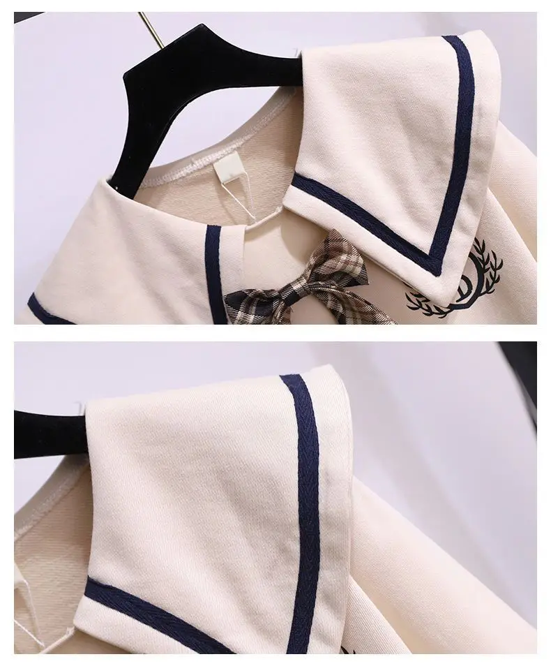 زي مدرسي كوري خريفي، بلوزة وقميص مع ربطة عنق وتنورة مطوية عالية الخصر، قطعتان