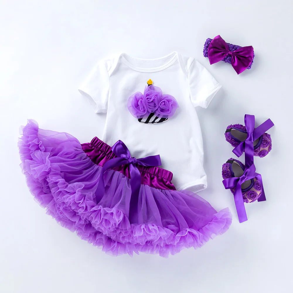 طقم تنورة وردية للبنات، ملابس للجسم، بدلة جسم أرجوانية مع فستان توتو مكشكش، ملابس للأطفال الرضع، إجازة صيفية على شاطئ البحر، 4 قطع/مجموعة